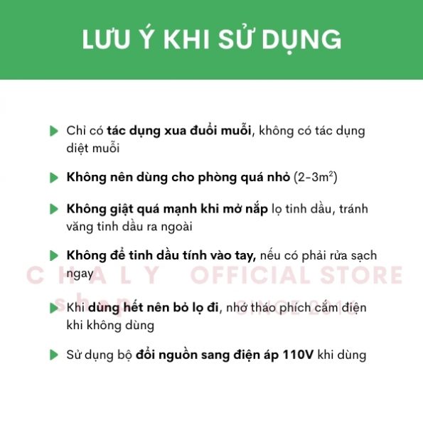 – Máy xông muỗi Nhật sử dụng điện áp 110v. Để đảm bảo hiệu quả hoạt động và độ bền của máy nên sử dụng thêm bộ đổi nguồn dành cho máy đuổi muỗi