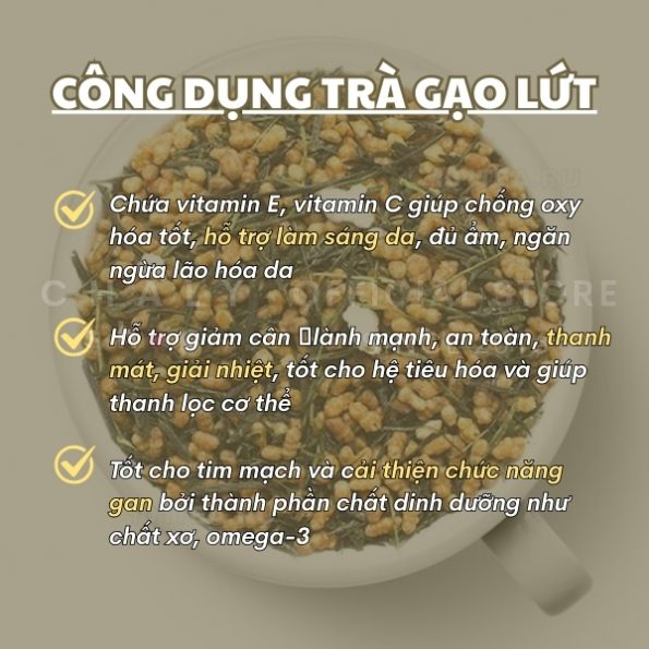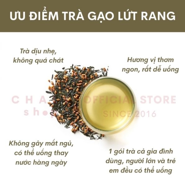 – Hương vị thơm ngon pha trộn giữa trà xanh và gạo lứt, rất dễ uống