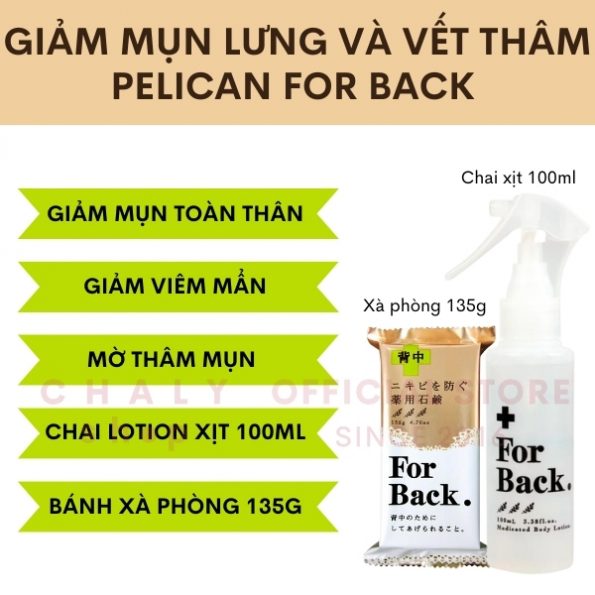 – Xịt mụn lưng của Nhật For Back là chai lotion dạng xịt cùng bộ với xà bông trị mụn, tạo nên cặp đôi sản phẩm trị mụn tốt nhất Nhật Bản For Back