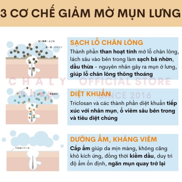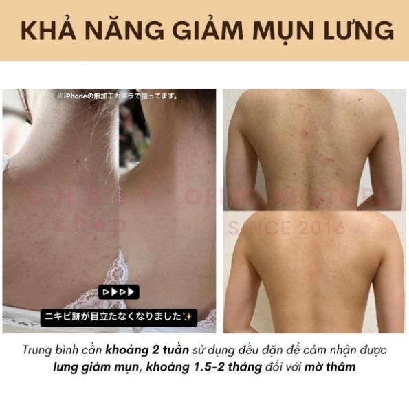 Không chỉ điều trị mụn lưng và viêm mụn hiệu quả, mà đồng thời còn hỗ trợ vết thâm mụn mờ đi theo thời gian