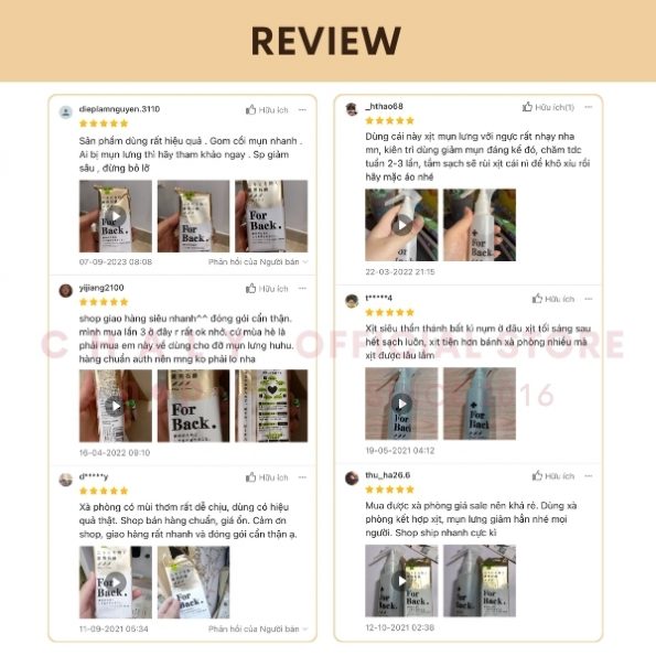 Bạn khách 1: Xịt mụn lưng for back review: Dùng bộ xà phòng For Back và xịt For Back đỡ cả thâm cả mụn