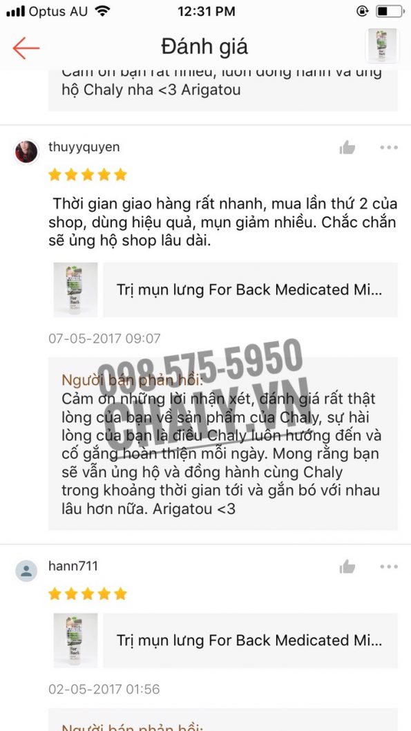 Bạn khách 2: “Mụn nặng lắm, hết cả lưng” mà mới dùng 1 chai xịt For Back medicated lotion đã “đỡ nhiều lắm” rồi