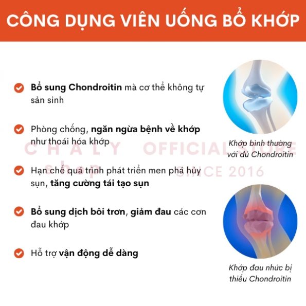 + Bổ sung chondroitin mà cơ thể không thể tự sản sinh, từ đó tổng hợp đủ glucosamine tốt cho khớp