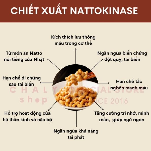 – Khả năng chống oxy hóa cao của chất nattokinase cũng giúp chống lão hoá, tăng cường tuổi thọ của các cơ quan nội tạng, qua đó đẩy lùi bệnh tật, giúp sống thọ và khoẻ mạnh