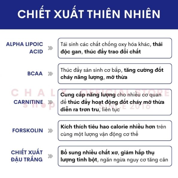 – Mục đích sử dụng: Kích thích đốt mỡ, giảm hấp thu calorie, hỗ trợ giảm cân