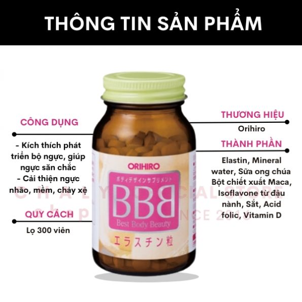 – Viên uống BBB của Orihiro giúp tăng sự phát triển của các mô đệm mỡ quanh ngực, đồng thời hỗ trợ cơ thể hấp thu collagen tốt hơn, kích thích các tế bào da và dây chằng nâng đỡ ngực phát triển, nhờ đó giúp ngực tăng size và săn chắc