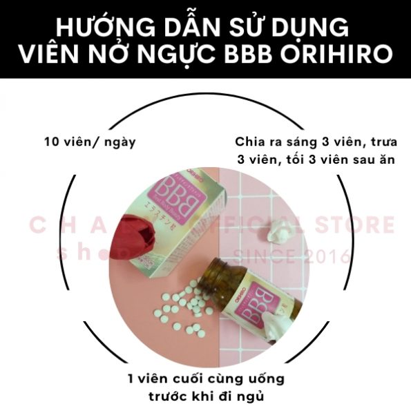 – Người mới sử dụng viên nở ngực BBB Orihiro Nhật nên bắt đầu uống với liều 5 viên/ ngày trong 1 tuần đầu tiên. Khi đã quen với sản phẩm thì bạn bắt đầu uống đúng liều 10 viên/ ngày theo khuyến cáo của nhà sản xuất để đạt hiệu quả mong muốn nhanh nhất
