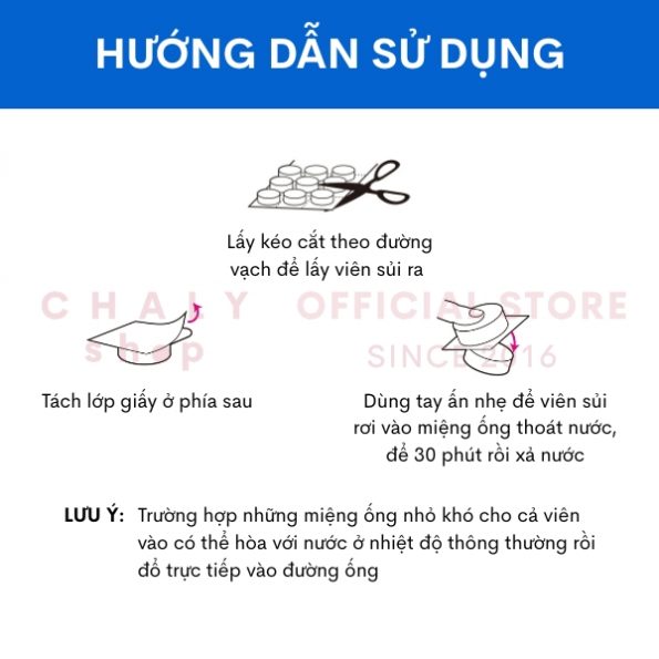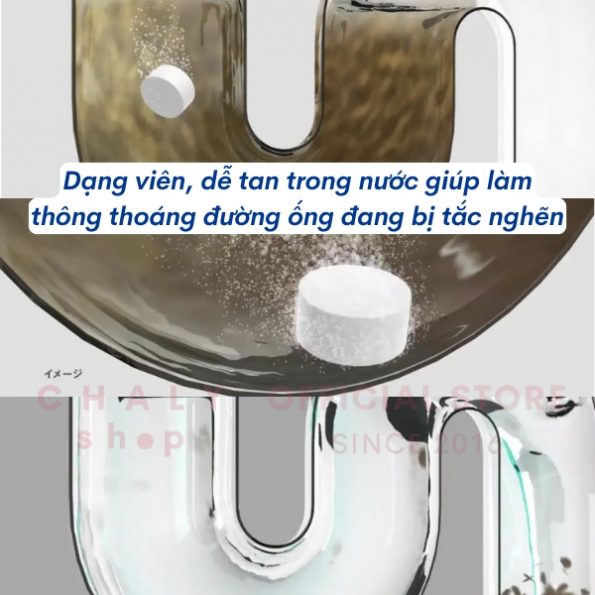 “Lần đâu tiên xài cho ống thoát thì phải 2-3 viên mới sạch hết được nha mọi người. Còn sau đấy để vệ sinh thường xuyên thì tốt nhất cứ 1 tuần 1 viên là yên tâm sạch bách á. Viên này cho vào gặp nước là sủi bọt như C sủi, hết sủi là đã phân hủy xong rồi đó”