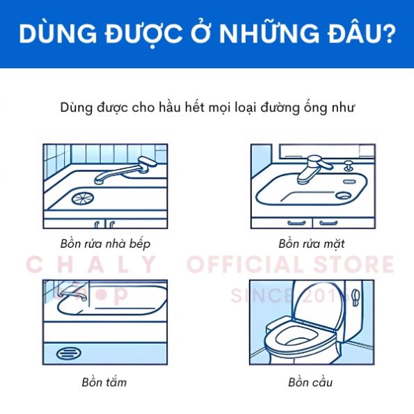 – Làm phân huỷ chất bẩn, các mảng bám và loại bỏ chất gây bít tắc đường ống như: tóc, cặn thực phẩm… nhanh chóng ngay khi tiếp xúc