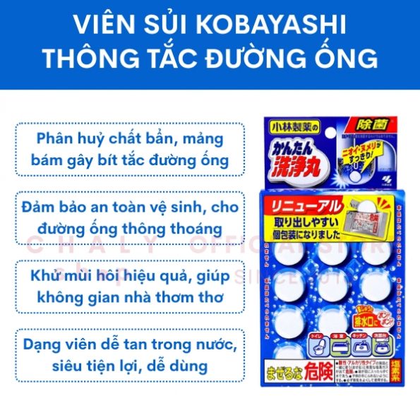 - 1 Thông tin chi tiết – Viên sủi Kobayashi thông tắc đường ống Nhật 12 viên