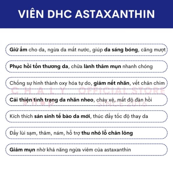 – Viên uống DHC Astaxanthin supplements chống lão hoá chính hãng về số lượng ít một, liên tục, mẫu mới nhất để khách hàng yên tâm khi dùng