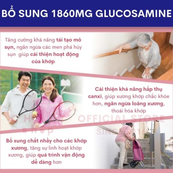 + Cung cấp glucosamine còn có tác dụng cải thiện khả năng hấp thụ canxi, giúp xương khớp chắc khỏe hơn, chống loãng xương, ngăn ngừa tình trạng thoái hóa khớp
