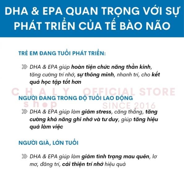– DHA EPA của Nhật có vai trò quan trọng với sự phát triển của tế bào não nói riêng và hệ thần kinh nói chung