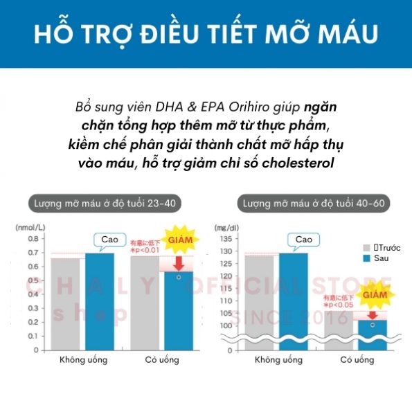 – Đồng thời, một công dụng quan trọng khác của DHA và EPA của Nhật đã được kiểm nghiệm và chứng minh là khả năng kiểm soát cholesterol trong máu hiệu quả