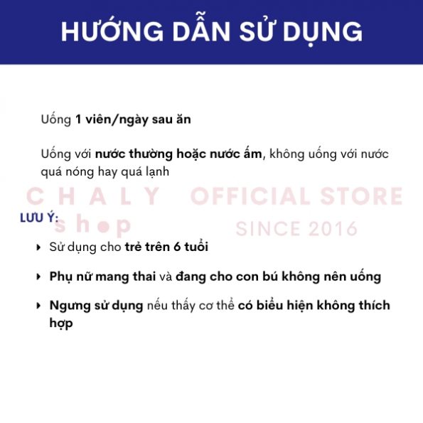 – Uống 1 viên/ ngày sau bữa ăn