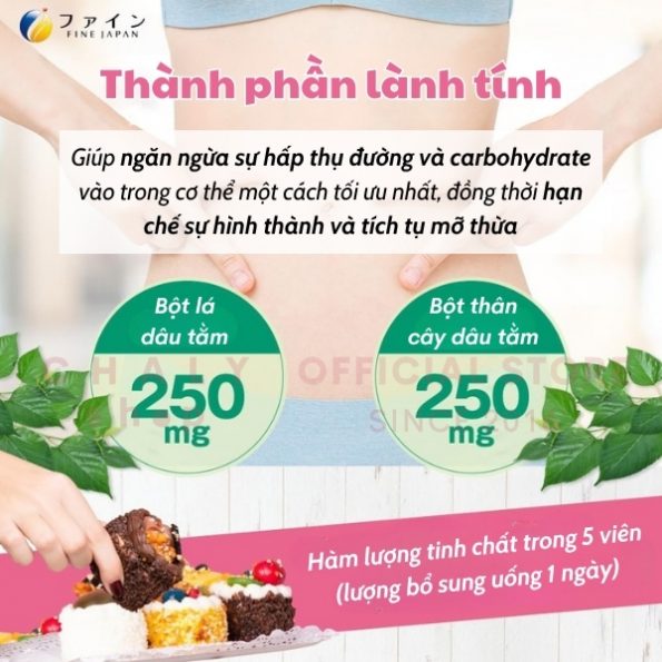 Với thành phần có nguồn gốc thiên nhiên như bột lá dâu tằm, bột thân cây dâu tằm và chitosan (từ cua), viên Calorie Burn Fine Japan an toàn sử dụng, phù hợp cho người hay ăn đêm, ăn nhiều dầu mỡ, đồ ngọt…