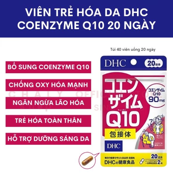 – Viên uống DHC Coenzyme Q10 với thành phần chính là coenzyme Q10 mang lại nhiều tác dụng cho cơ thể cả về sắc đẹp và sức khoẻ