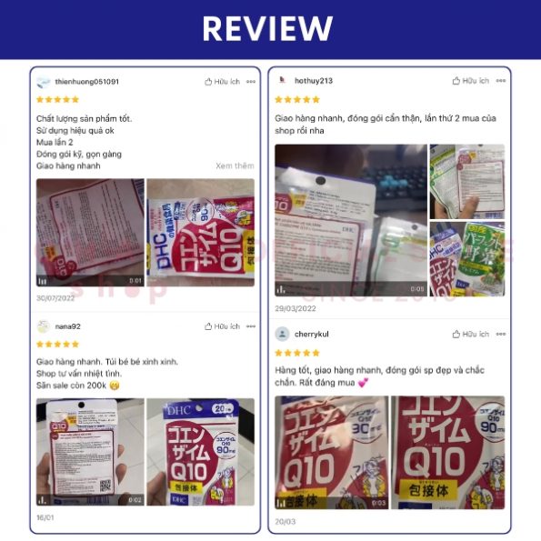 “Mình thích mua thực phẩm chức năng của DHC vì rẻ – tốt – dễ uống và hiệu quả rõ rệt. Hàng chuẩn chính hãng, dùng thử được 2 tuần thấy đã cải thiện lên chút rồi. Da trắng và mịn hơn nhiều, có độ căng, săn chắc hơn. Sẽ ủng hộ shop dài dài trong tương lai ạ”