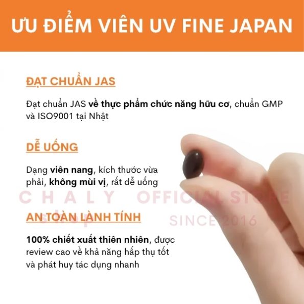 – Trong các dòng viên uống chống nắng nội địa Nhật, viên Fine Japan UV supplements là sản phẩm cao cấp, có thành phần nguồn gốc thiên nhiên lành tính, rất được ưa chuộng