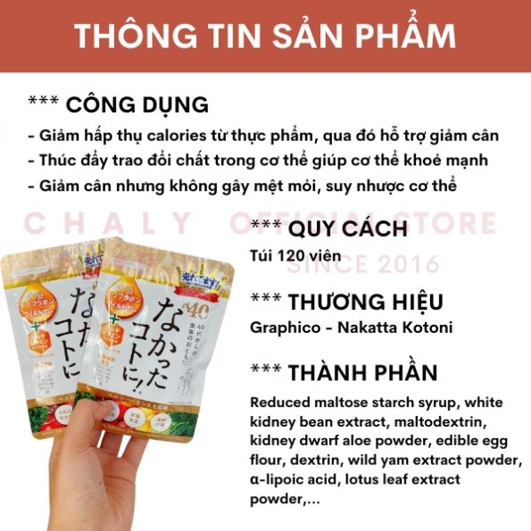 – Viên thuốc giảm cân của Nhật Nakatta Kotoni không sử dụng chất hoá học, không chất béo, không calorie