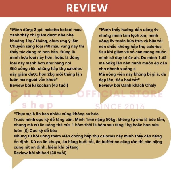 “Mình dùng 2 gói nakatta kotoni màu xanh thấy chỉ giảm được nhè nhẹ khoảng 1kg/ tháng, chưa ưng ý lắm