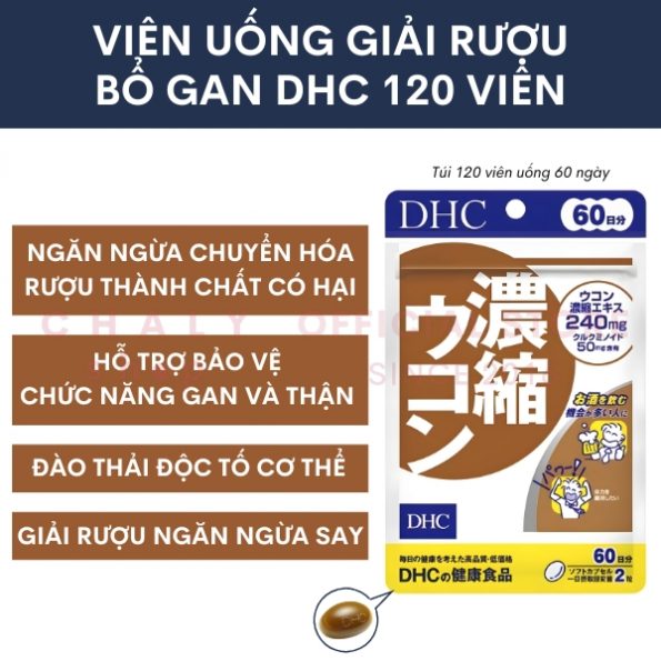 Thuốc giải rượu DHC của Nhật Bản gồm 50mg curcuminoid đậm đặc trên mỗi liều uống, được chiết xuất từ 3 loại tinh chất nghệ Nhật khác nhau, rất hiệu quả