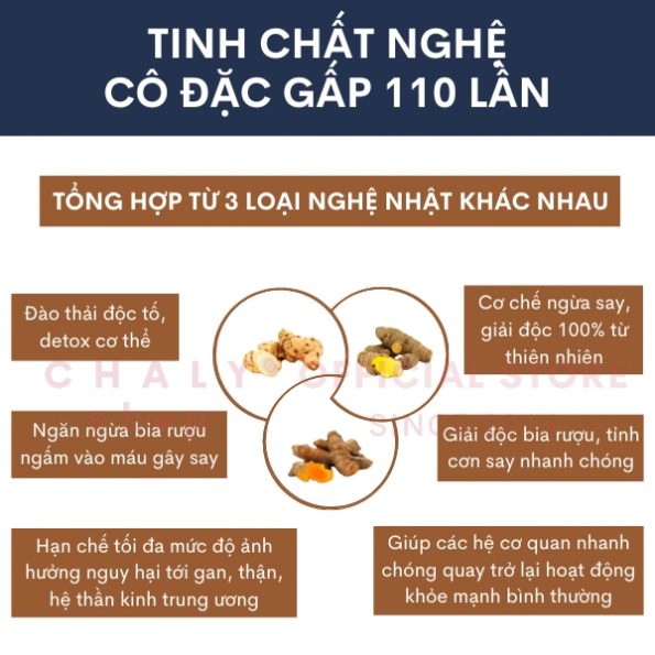 – Nếu có nhu cầu giải độc tố rượu nhẹ nhàng hơn, bạn có thể sử dụng trà giải rượu Nhật Bản của Orihiro cũng chứa tinh chất nghệ giúp bổ gan thải độc