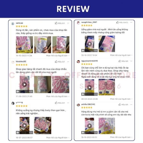 Uống chục ngày mà trông mình đỡ sồ sề hơn rất nhiều rồi, mà viên uống giảm cân dhc 20 ngày này còn bổ sung cả collagen giúp da căng mịn tránh rạn da khi cân sụt nữa chứ, các chị em nên dùng nhé”