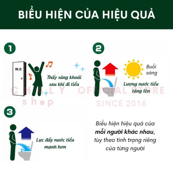 – Mục đích sử dụng: Giảm tiểu đêm, tiểu rắt, tiểu nhiều lần. Ngăn ngừa viêm đường tiết niệu, sỏi thận
