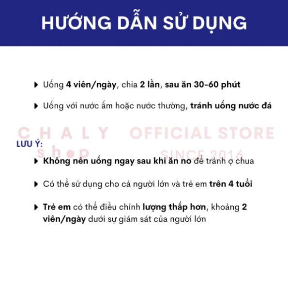– Trẻ em có thể điều chỉnh uống lượng thấp hơn, khoảng 2 viên/ ngày