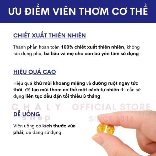 – Kích cỡ viên uống tạo mùi thơm cơ thể của Nhật vừa phải, rất dễ uống