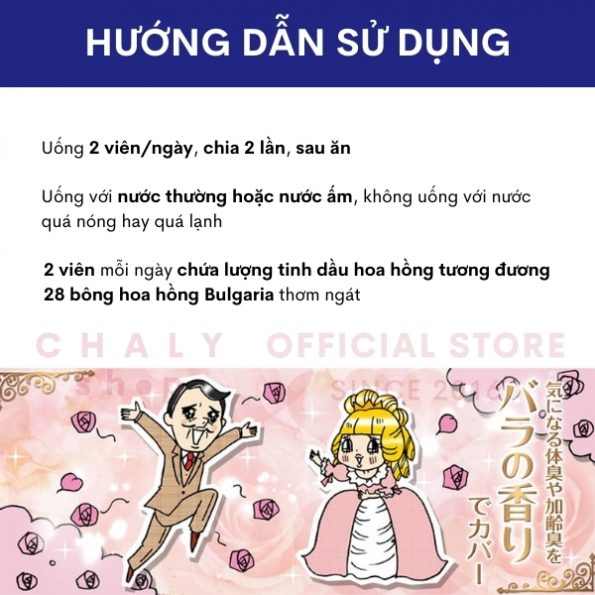 – Sử dụng lâu dài liên tục viên hoa hồng DHC trong tối thiểu 2-3 tháng trở lên, mùi cơ thể cùng tuyến mồ hôi sẽ được kiểm soát tốt hơn