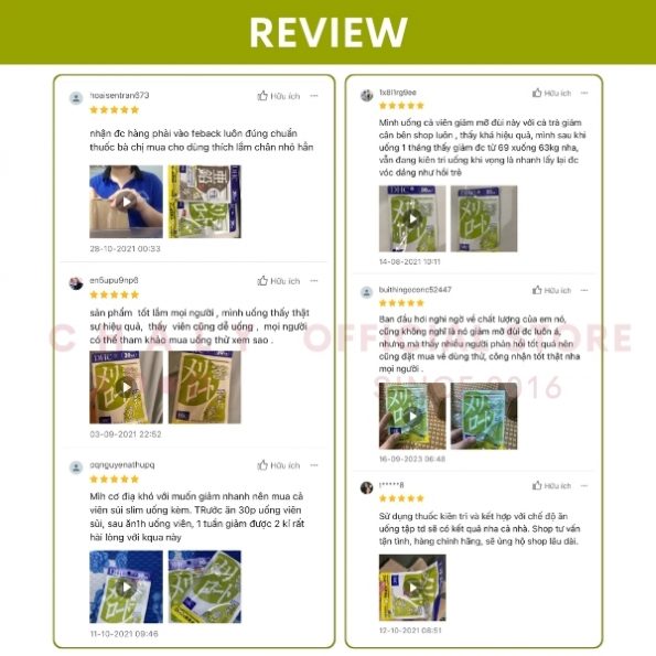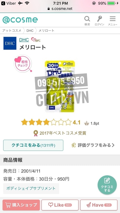 – DHC melilot thu hơn 1300 review trên Cosme Ranking Nhật, số điểm cao 4.1 và liên tục lọt top viên uống giảm cân Nhật được yêu thích nhất từ 2017 tới nay theo bình chọn của người dùng Nhật
