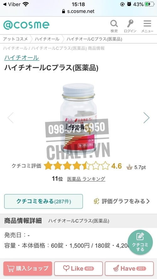 – Hythiol c plus mẫu mới của Nhật dù ra đời đã lâu nhưng hiện vẫn đứng vững trong top 11 viên uống trị mụn, đẹp da Nhật được yêu thích nhất trên Cosme japan