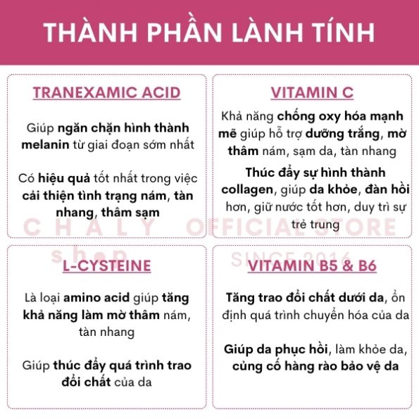 – Phù hợp cải thiện nám da do các yếu tố nội tại bên trong như nội tiết, stress ..