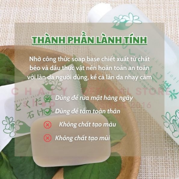 Rau diếp cá ở Nhật cũng phổ biến như ở Việt Nam. Từ lâu người Nhật đã sử dụng diếp cá để làm mỹ phẩm và trà uống. Nhờ công thức soap base chiết xuất từ chất béo và dầu thực vật nên hoàn toàn an toàn với làn da người dùng, kể cả những bạn có làn da nhạy cảm
