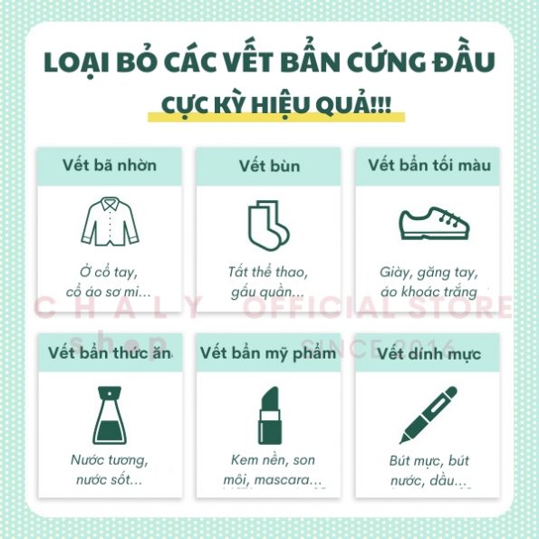 – Có khả năng tẩy sạch tất cả các loại vết bẩn cứng đầu như vết bẩn ố vàng, vết bùn, vết thức ăn, vết son, vết dầu, vết mực… cho quần áo trắng sạch tinh tươm
