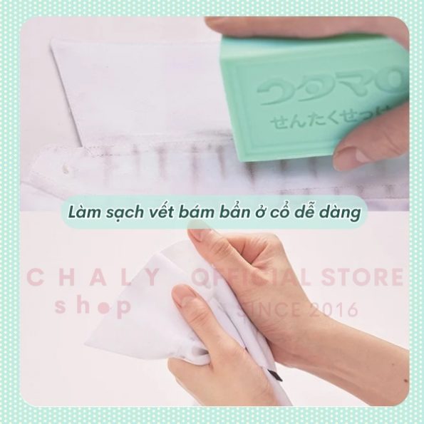 – Với thành phần từ gốc thực vật, xà phòng Toho Utamaro Nhật chuyên dùng để tẩy trắng quần áo (ở những nơi hay bẩn như cổ, nách, tay áo), vớ, giày…