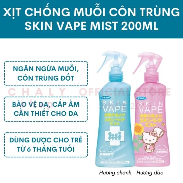 Xịt chống đuổi muỗi Skin Vape mist là sản phẩm thuốc xịt muỗi lâu đời hàng đầu ở thị trường Nhật nội địa, là sản phẩm xịt muỗi quốc dân của người Nhật