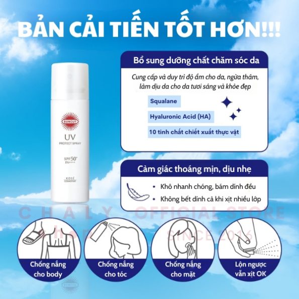 - 4 Cách dùng kem chống nắng Kose Suncut dạng xịt UV Protect Spray Nhật