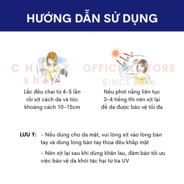– Nên xịt lại sau khi dùng khăn lau, đảm bảo tối ưu việc bảo vệ da khỏi tác hại từ tia UV