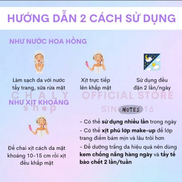 – Sử dụng nhiều lần xuyên suốt trong ngày bất cứ khi nào cảm thấy da thiếu ẩm cần bổ sung