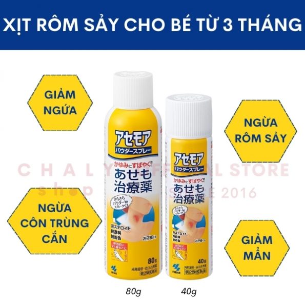 Không chỉ thế, xịt trị rôm sảy Kobayashi của Nhật (アセモアパウダースプレー 80g) còn giúp cải thiện và điều trị tốt ngay cả các vùng da bị eczema, côn trùng cắn gây ngứa ngáy khó chịu