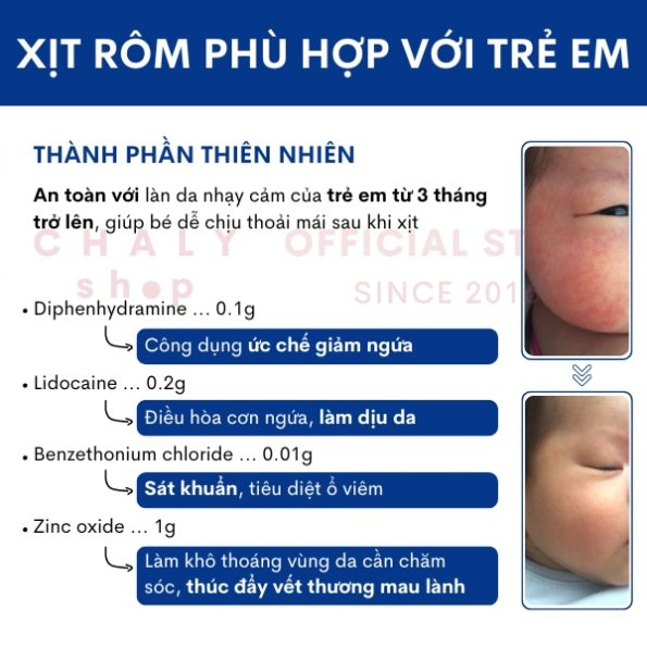 Cứ tới mùa hè nóng bức là con nhà mình lên rôm sảy kinh dị, ngứa ngáy khó chịu. Khổ thân con. Trước đây mình cũng lấy phấn rôm bôi vào cho con nhưng không đỡ bao nhiêu, chỉ khô thoáng da hơn thôi. Từ ngày cho con dùng cái xịt rôm nhật thì thấy tốt, không chỉ khô thoáng mà chỗ da ngứa bị con gãi bung bét ra dịu lại và lành nhanh chóng. Nói chung cực kỳ ưng cái chai xịt trị rôm sảy của Nhật này