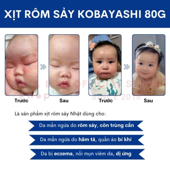 – Xịt rôm sảy Kobayashi Nhật là sản phẩm số 1 thị trường về điều trị các triệu chứng ngứa, nổi mẩn mụn, dị ứng do tình trạng rôm sảy gây ra