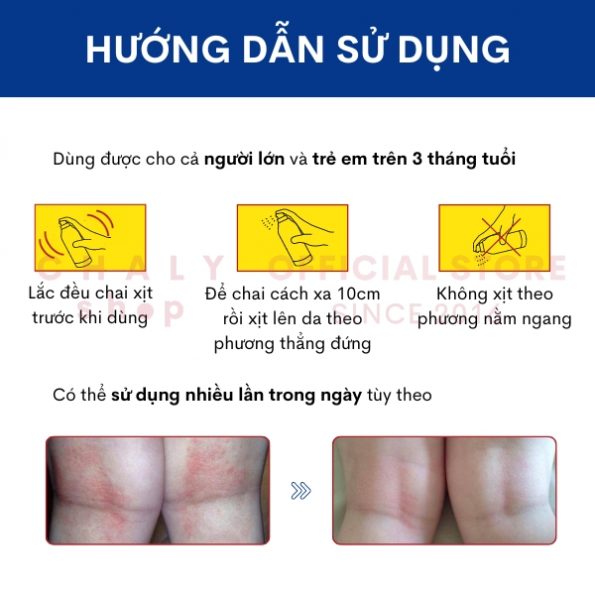 + Xịt vào các vùng da bị côn trùng cắn đốt giúp làm dịu cơn đau ngứa, giúp vết cắn mau lành
