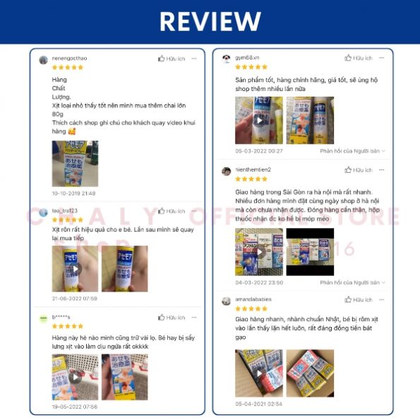 Một số review thực của khách hàng sử dụng xịt trị rôm sảy Kobayashi tại Chaly shop – Shop Nhật Chaly